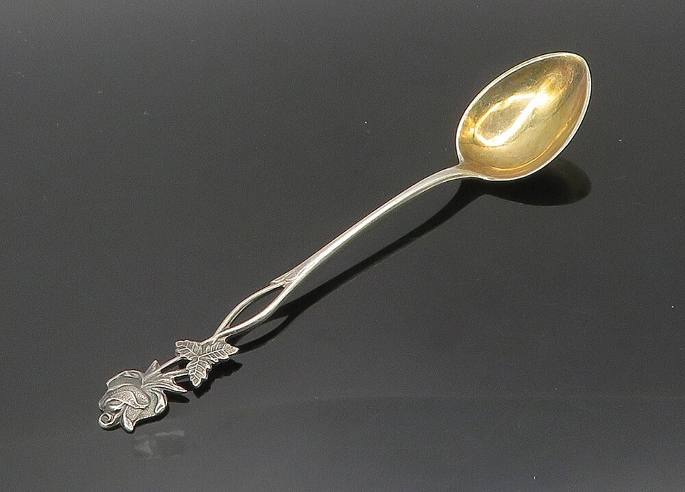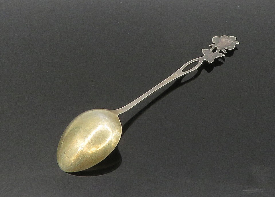 EUROPEAN 925 Sterling Silver Vintage Rose Flower Souvenir Spoon TR2925