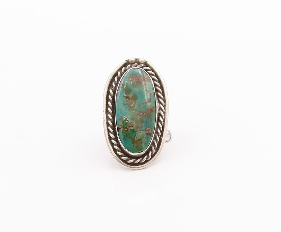 925 Sterling Silver Vintage Ring NAVAJO Oval Turquoise Halo Roped Sz 9.5 RG28610