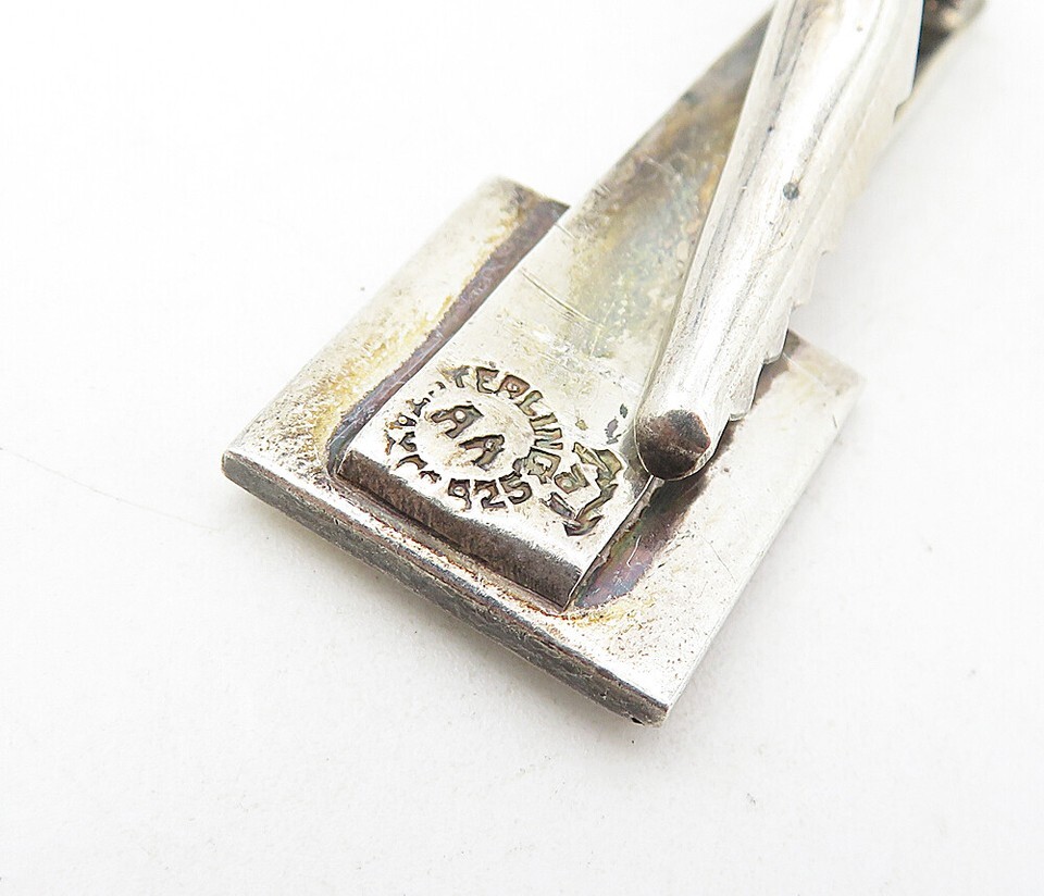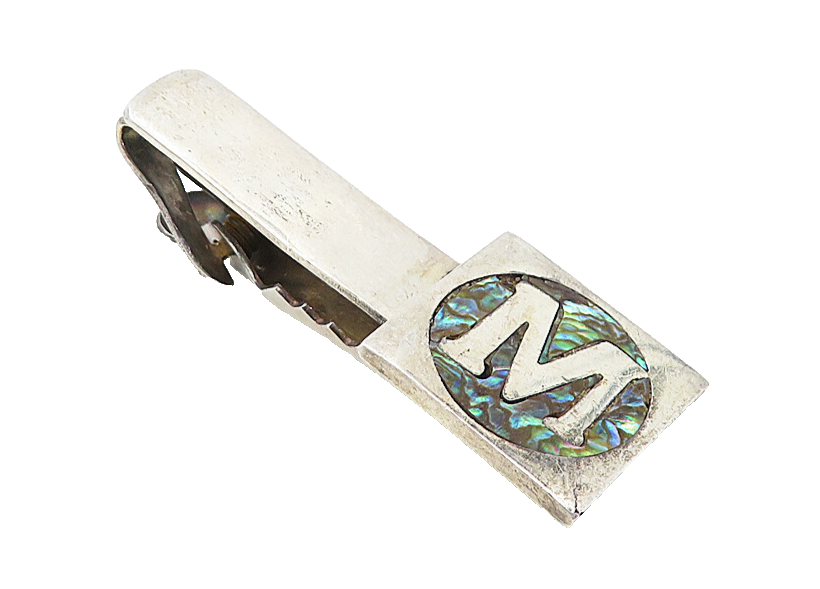 AA MEXICO 925 Silver Vintage Abalone Shell M Initial Square Tie Clip TR1386