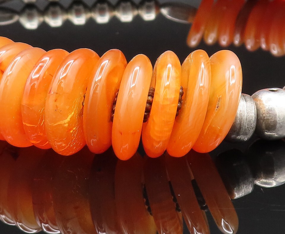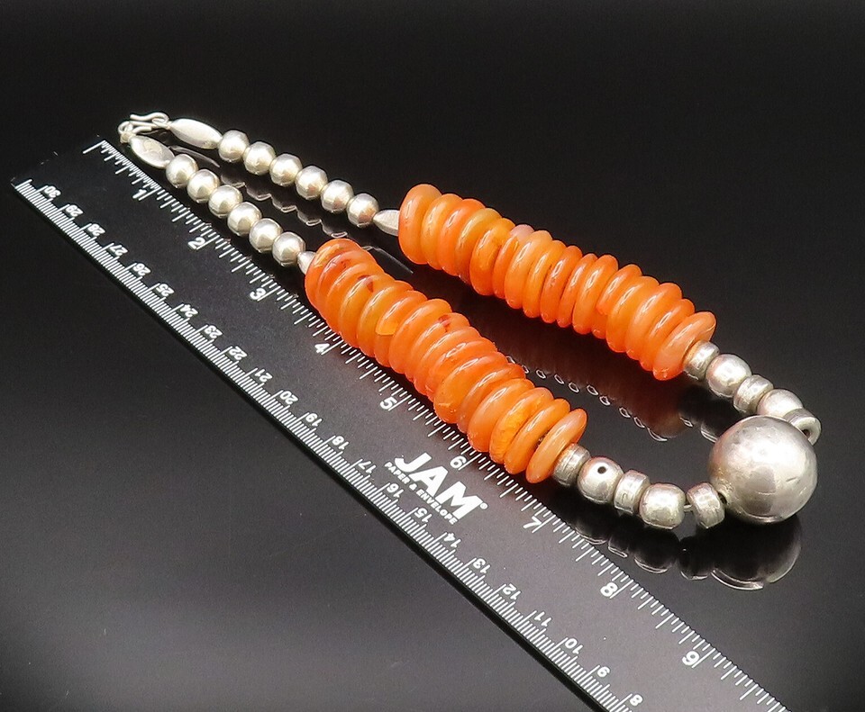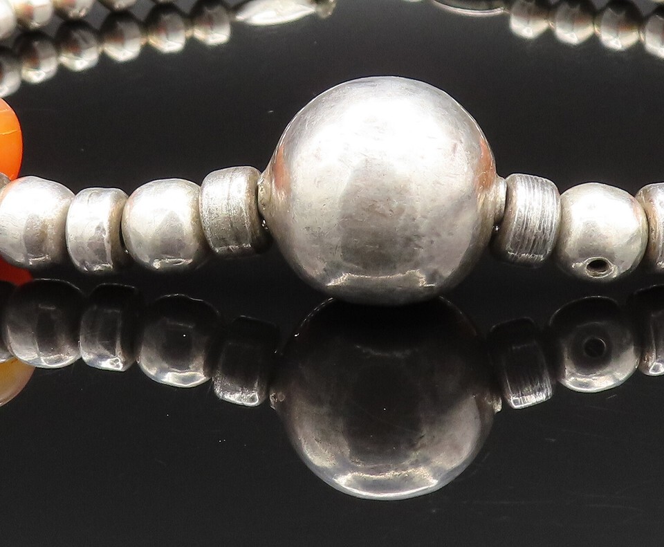 Authenticity Guarantee 925 Sterling Silver Vintage Heavy Carnelian & Bead B...