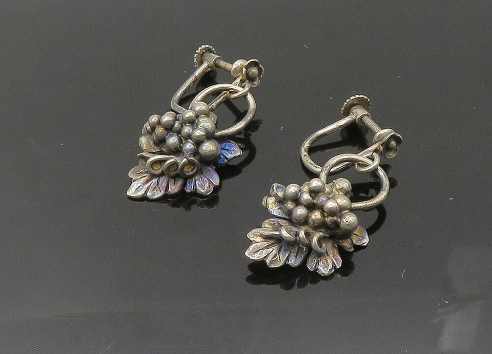 EUROPEAN 925 Silver Vintage Grape Bunch Non Pierce Drop Earrings EG10725