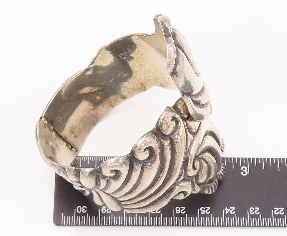 TAXCO MEXICO 925 Silver Vintage Swirly Puffy Art Carved Bracelet BT9892
