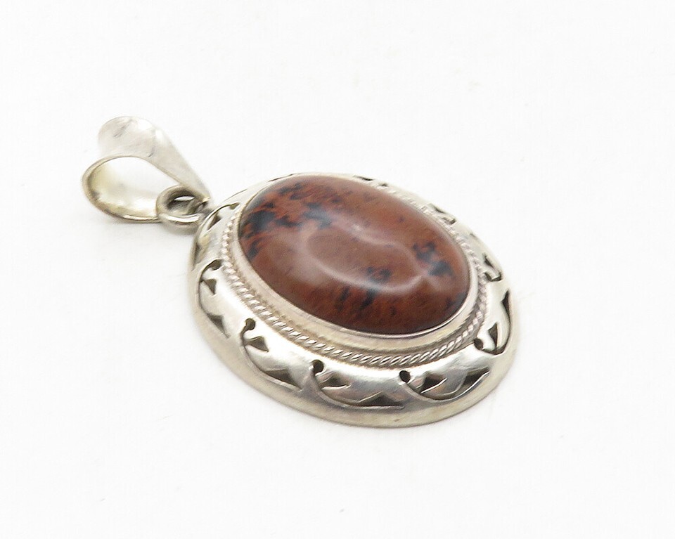 CII MEXICO 925 Sterling Silver Vintage Cabochon Jasper Drop Pendant PT7760
