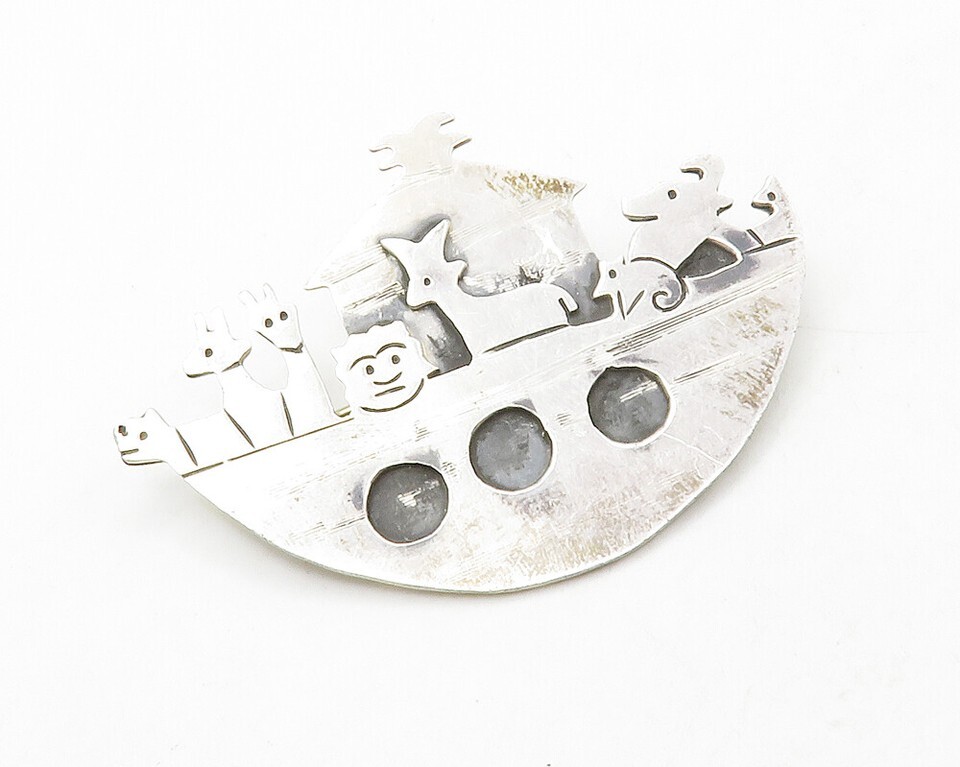 MEXICO 925 Sterling Silver Vintage Noah's Arc Oxidized Brooch Pin BP5040