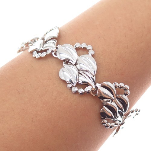 MEXICO 925 Silver Vintage Framed Leaf With Cherry & Jingles Bracelet BT9869