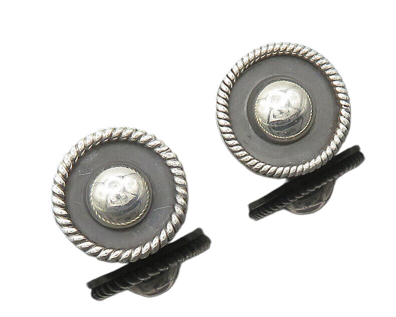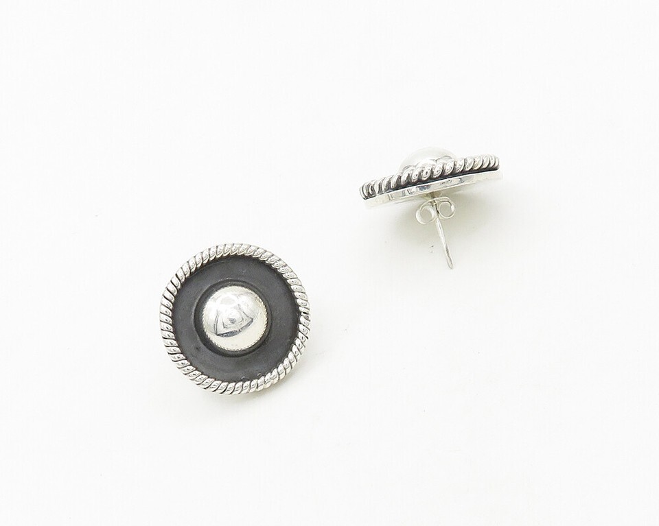 MEXICO 925 Sterling Silver Vintage Shiny Button Dome Stud Earrings EG9275