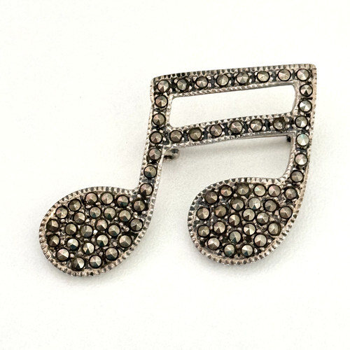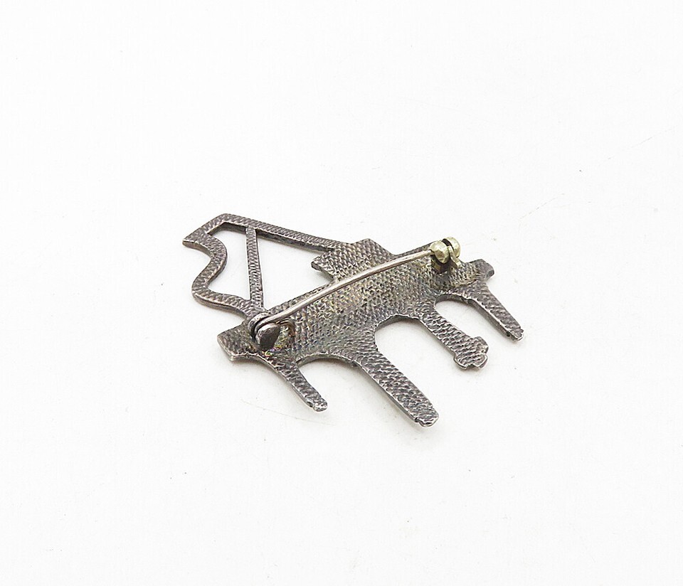 925 Sterling Silver Vintage Sparkling Marcasite Grand Piano Brooch Pin BP3356