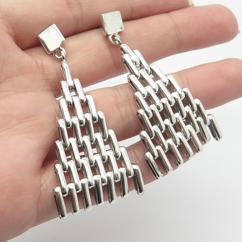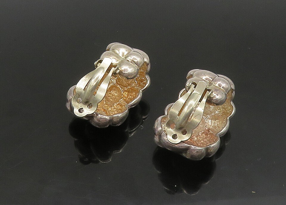 PB 925 Sterling Silver Vintage Modernist Heavy Non Pierce Earrings EG11426