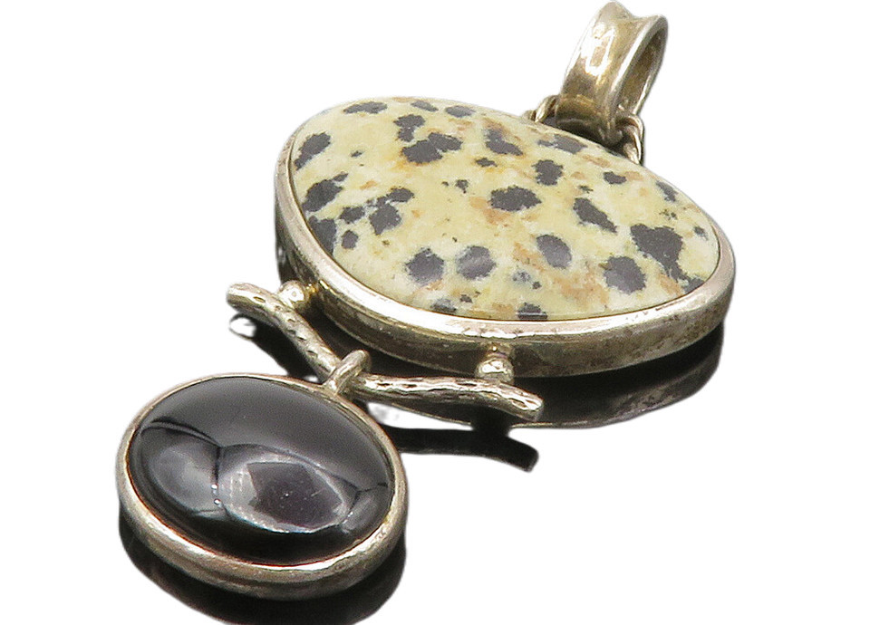 WHITNEY KELLY 925 Silver Vintage Spotted Jasper & Black Onyx Pendant PT11005