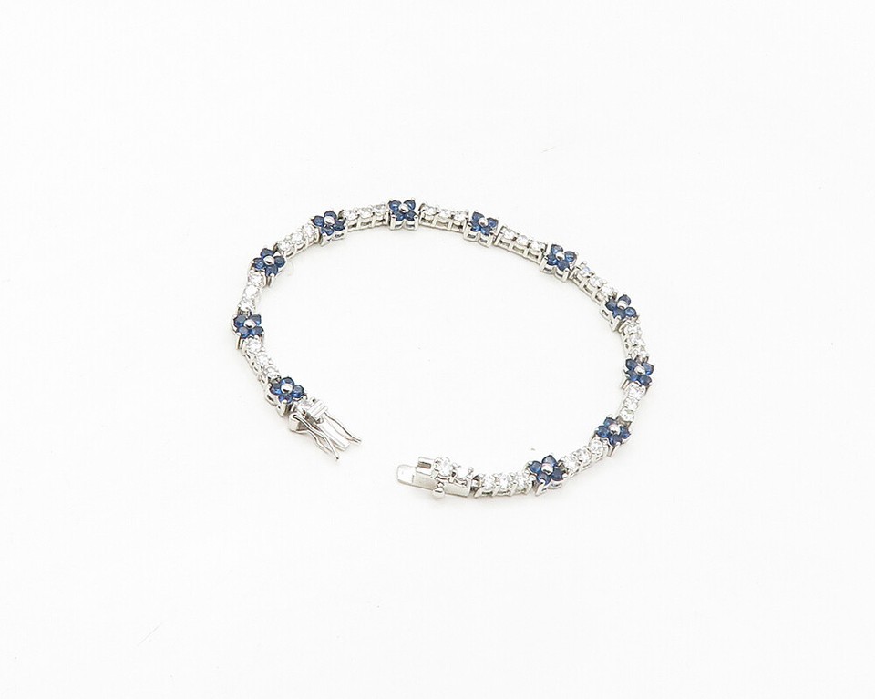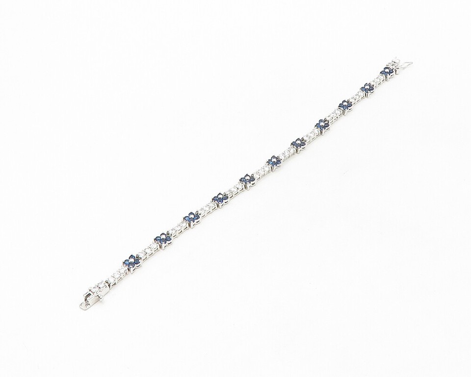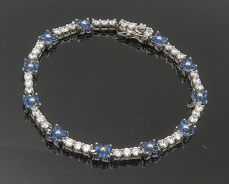 925 Sterling Silver Cubic Zirconia & Blue Topaz Floral Chain Bracelet BT6842