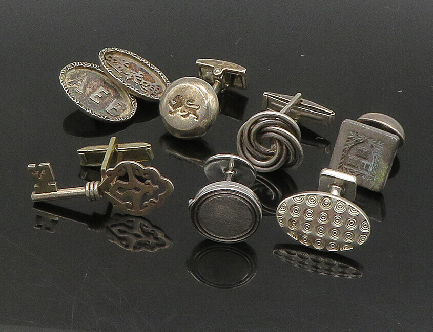 DESIGNER 925 Sterling Silver Vintage Shiny 7 Pcs Lot Single Cufflinks TR3153