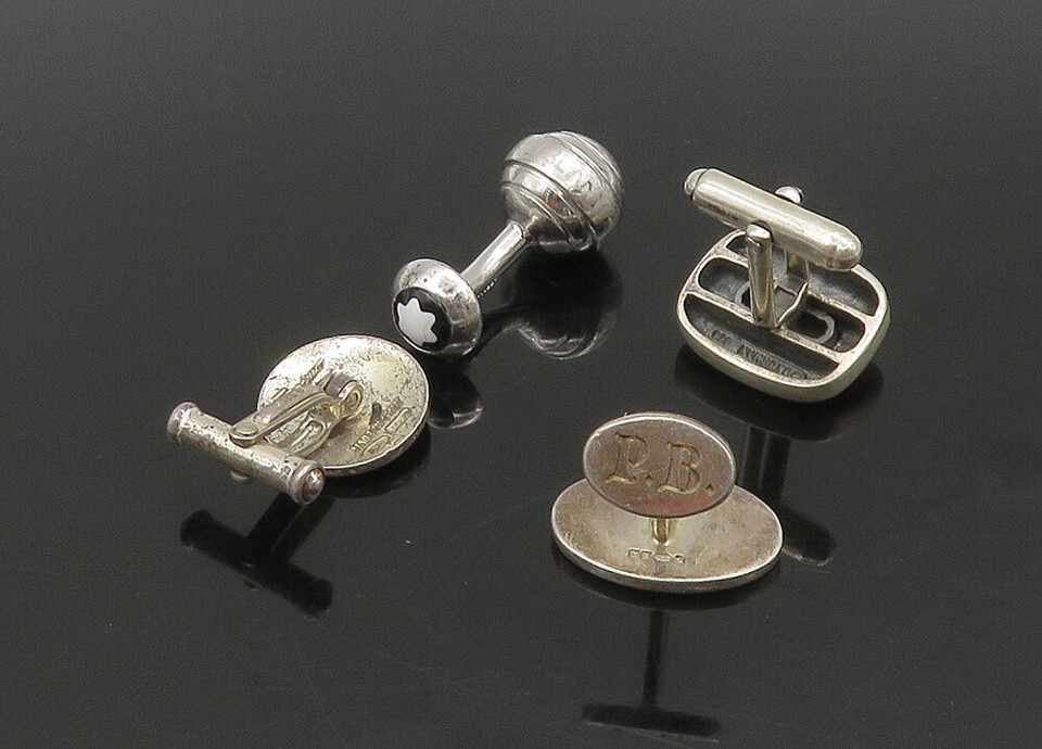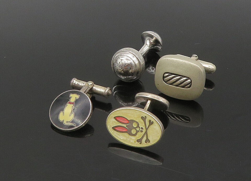 DESIGNER 925 Sterling Silver Vintage Enamel 4 Pc Lot Single Cufflinks TR3139