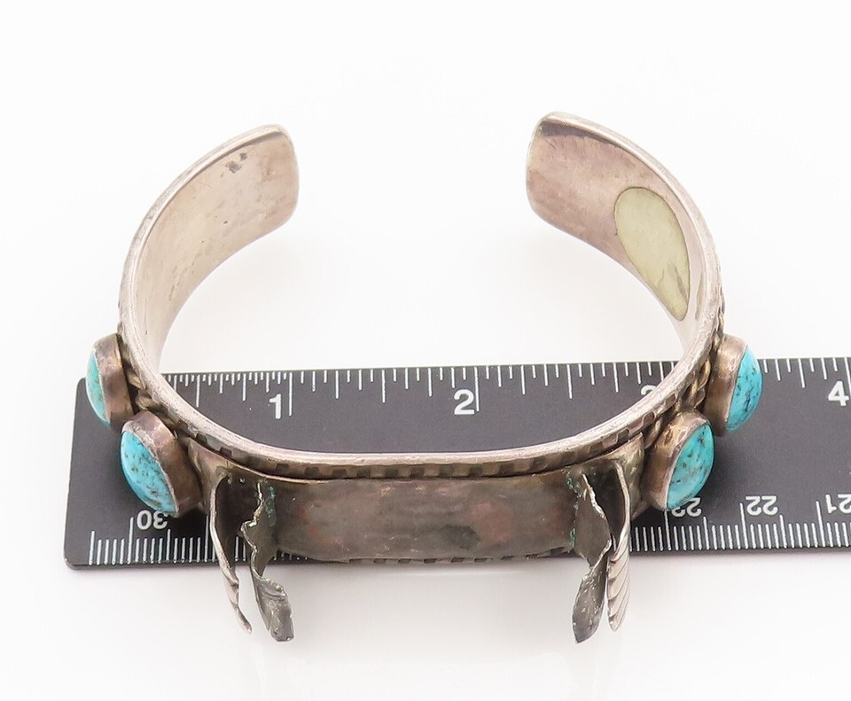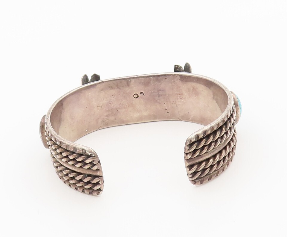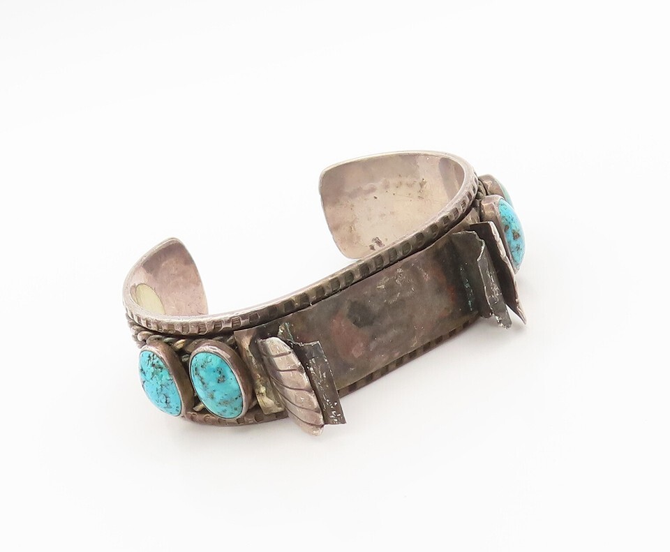NAVAJO ZUNI 925 Silver Vintage Antique Heavy Turquoise Cuff Watch TR3646