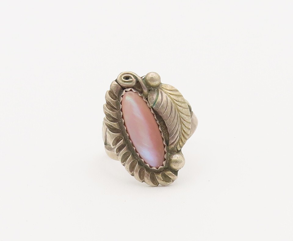 925 Sterling Silver Vintage Ring NAVAJO Abalone Swirly Carved Sz 6.5 RG27799