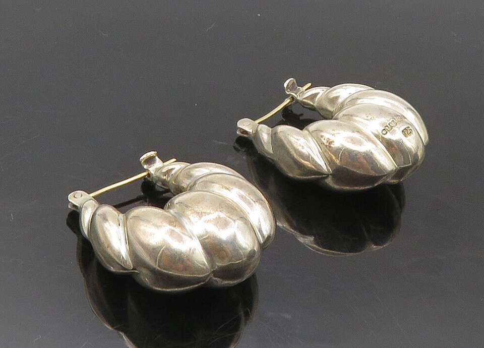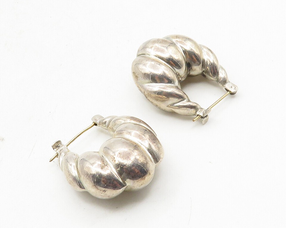 BAYANIHAN 925 Silver & 14K GOLD Vintage Hollow Fluted Hoop Earrings EG5140