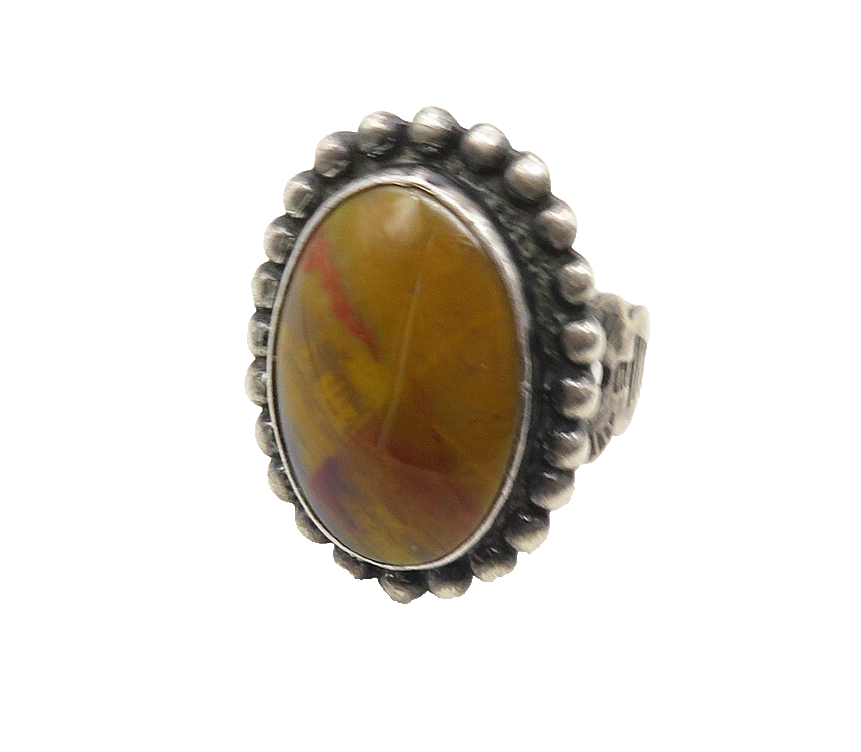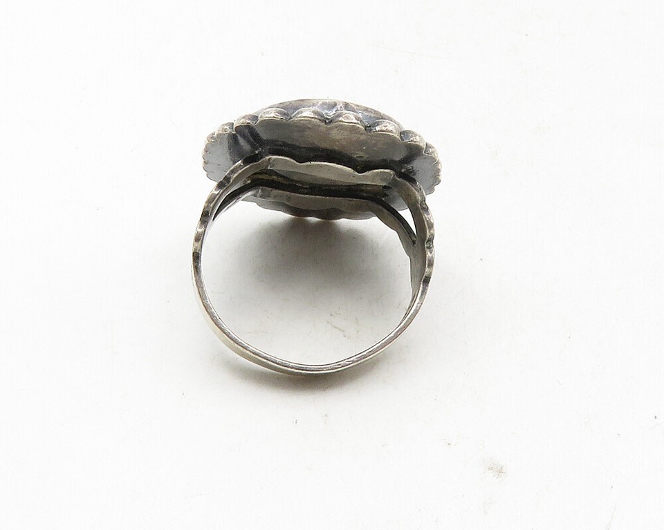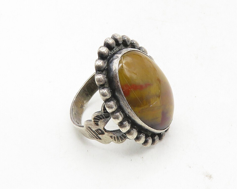 NAVAJO 925 Sterling Silver Vintage Agate Cocktail Ring Sz 6.5 RG9611