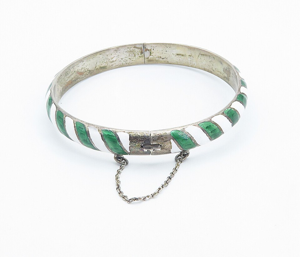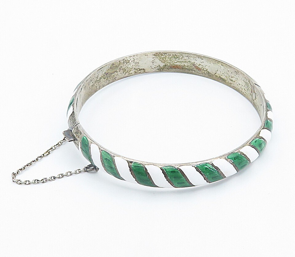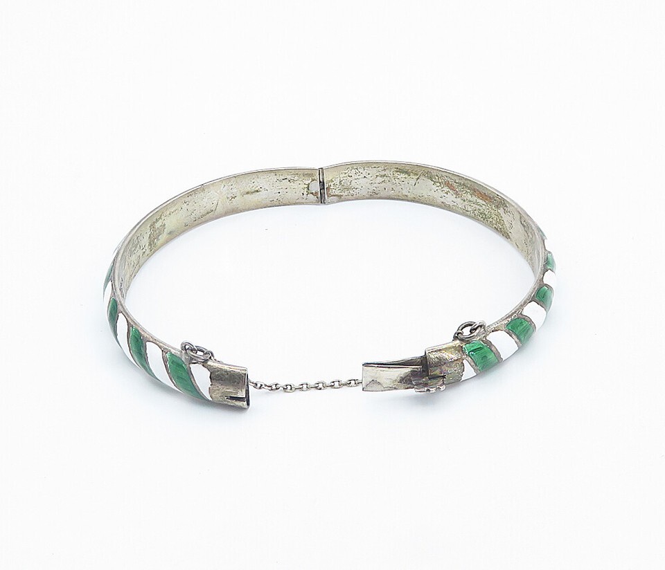 SIAM 925 Silver Vintage Enamel Striped Pattern Round Bangle Bracelet BT3415