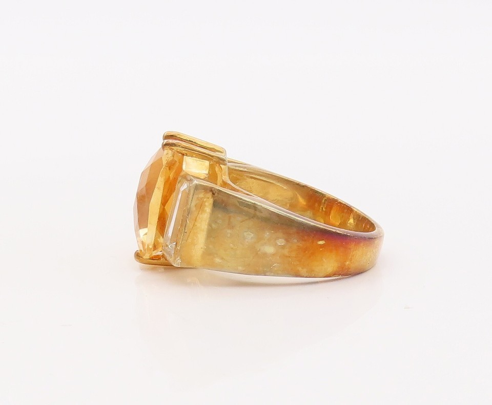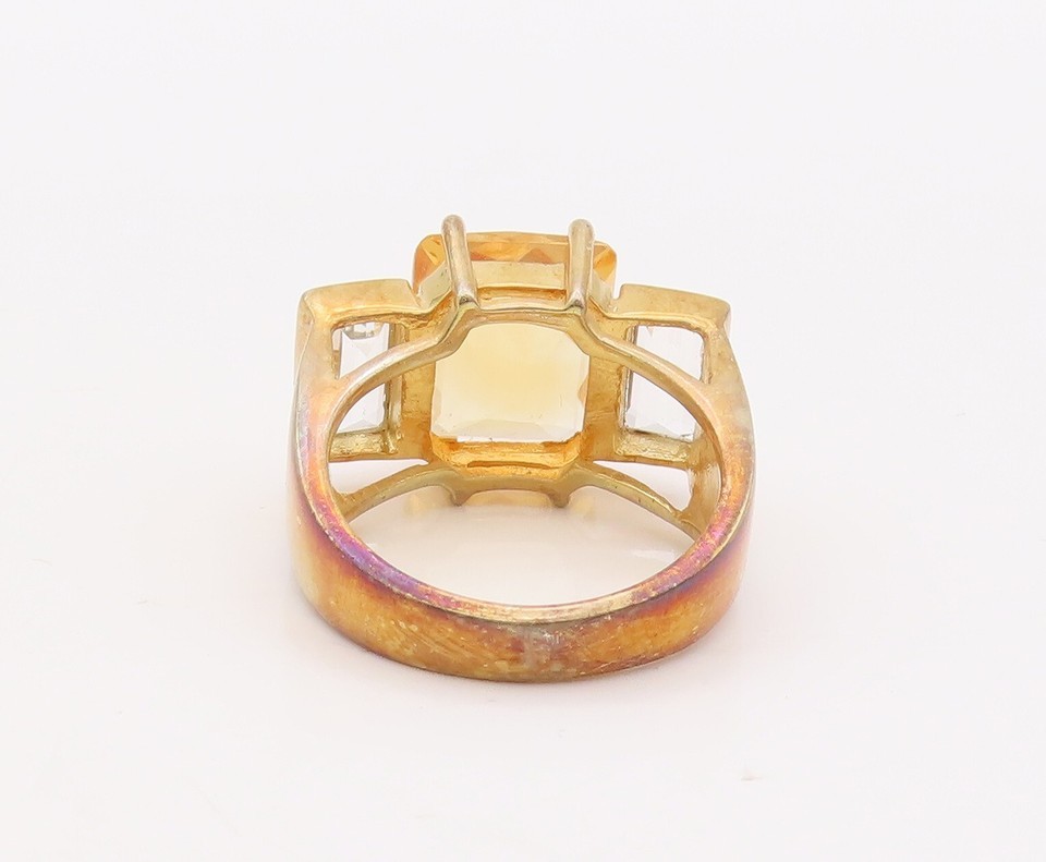 925 Sterling Silver Vintage Ring Gold Plated Citrine & Topaz Sz 7 RG29927