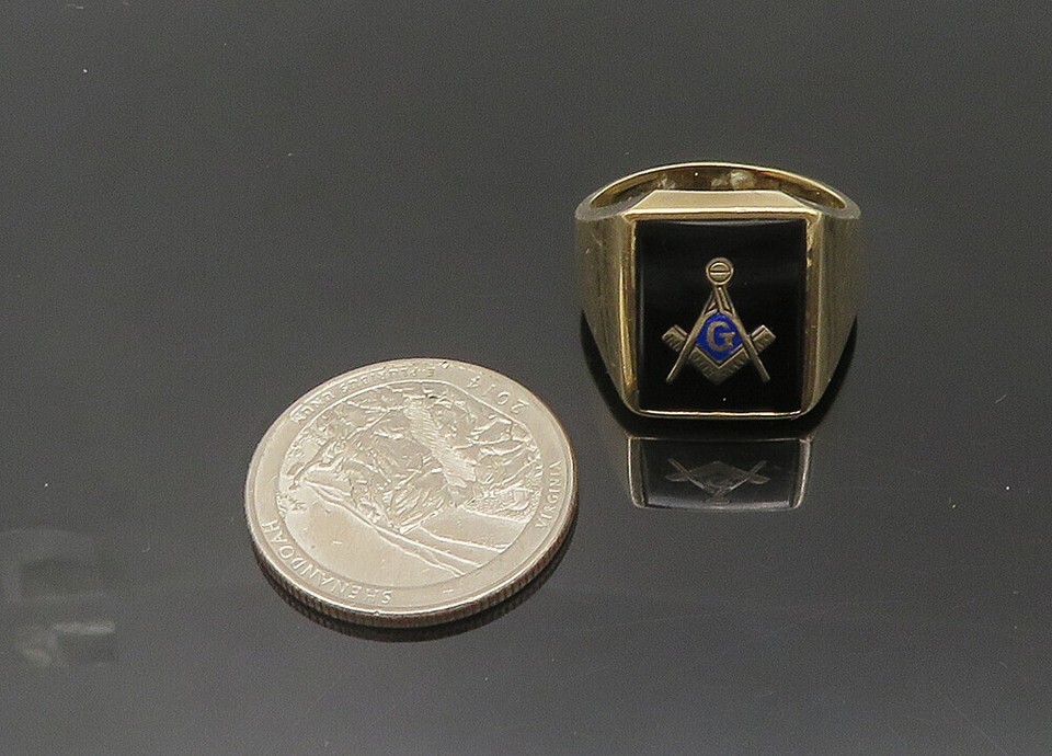 Authenticity Guarantee BADEN FOSS 10K GOLD Vintage Black Stone Free Mason Ba...