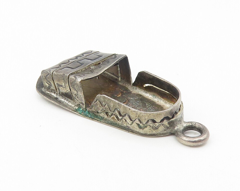 SOUTHWESTERN 925 Silver Vintage Oxidized Sandal Etched Detail Pendant PT9210