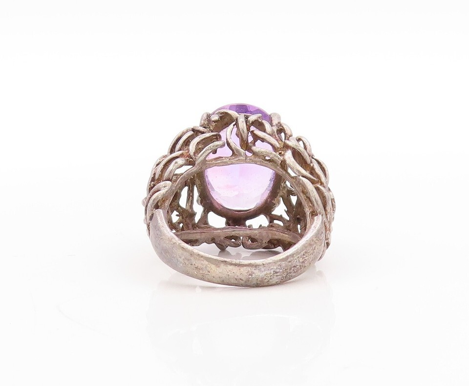 925 Sterling Silver Vintage Ring Dark Tone Brutalist Woven Amethyst Sz 5 RG31425