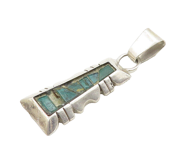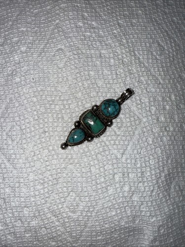 NAVAJO 925 Sterling Silver Vintage Antique Turquoise Drop Pendant PT15444