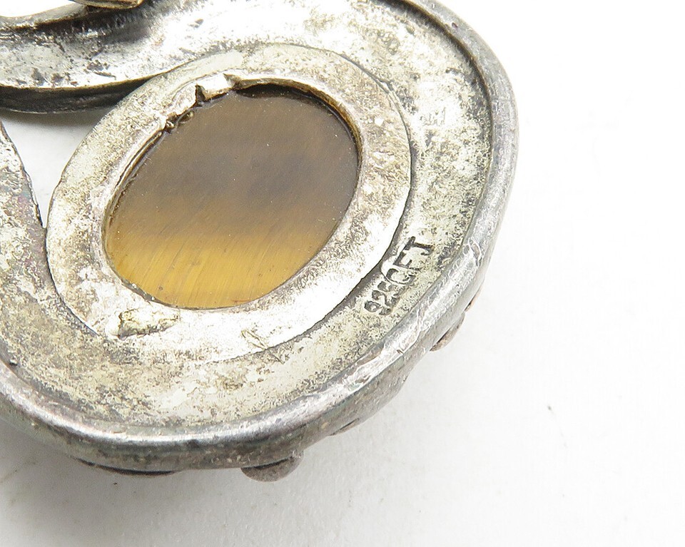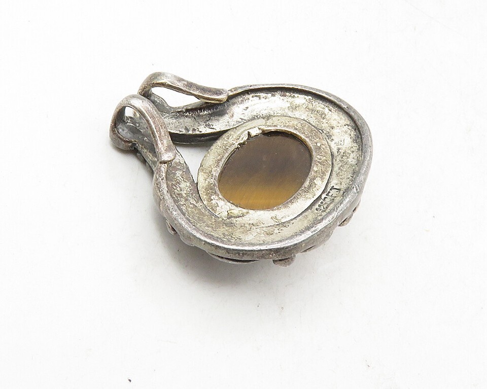 CFJ 925 Sterling Silver Vintage Cabochon Cut Tiger's Eye Swirl Pendant PT7868