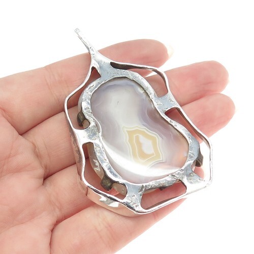 925 Sterling Silver Vintage Pendant DTR JAY KING Agate Solitaire Pendent PT22724