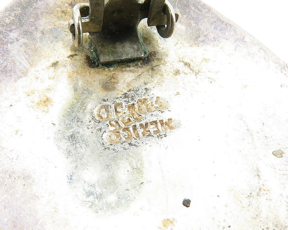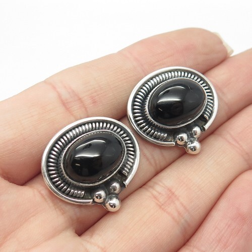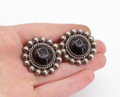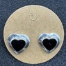 MEXICO 925 Silver Vintage Black Onyx Love Heart Non Pierce Earrings EG9066
