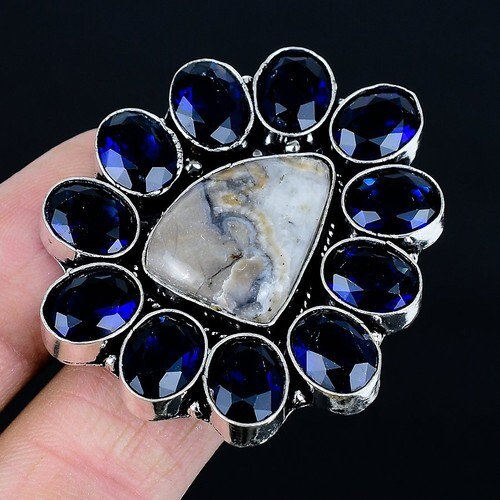 925 Sterling Silver Vintage Ring EUROPEAN Amorphas Crazy Lace Agate Sz 7 RG32663