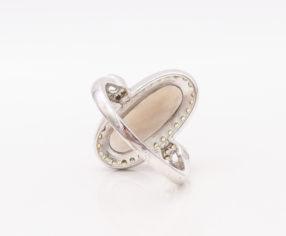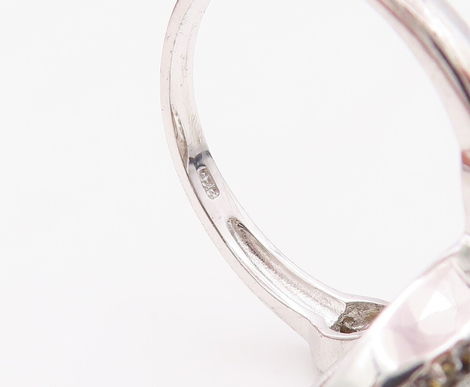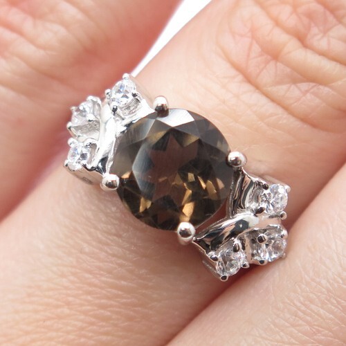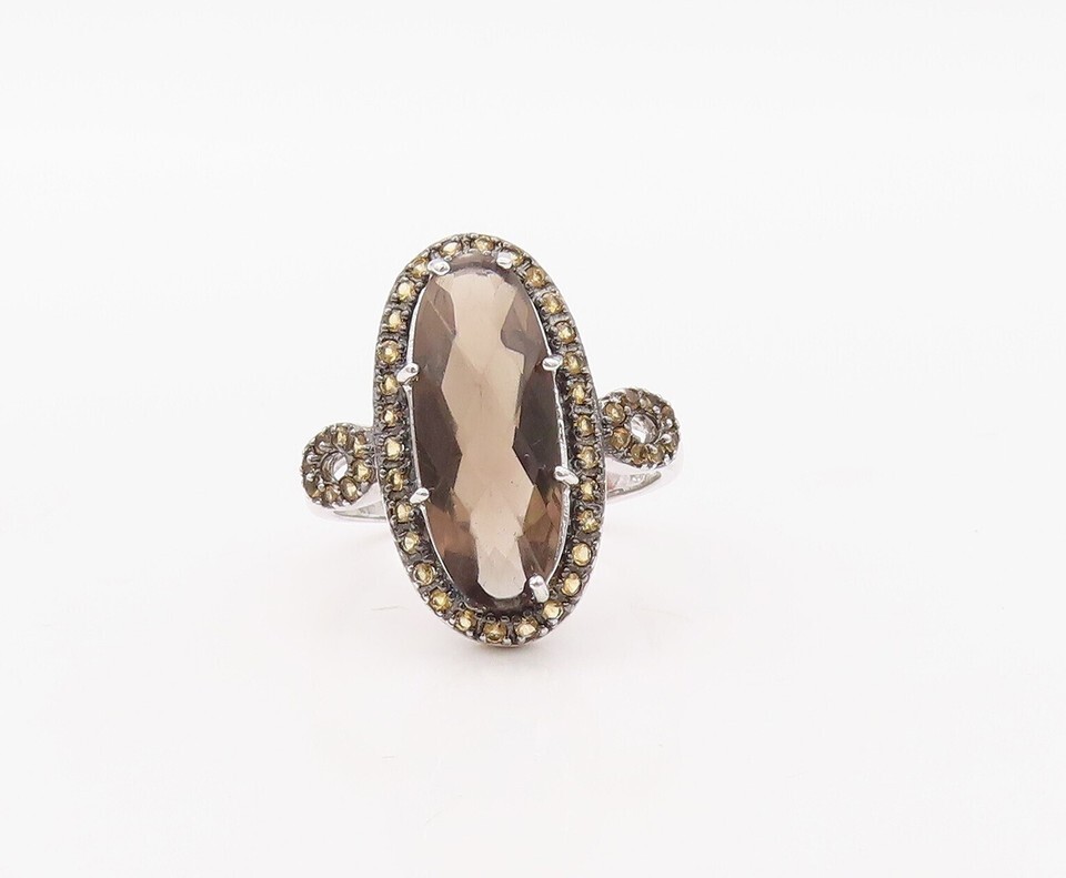 925 Sterling Silver Vintage Ring Oval Smoky Quartz Halo Citrine Sz 10.5 RG30762