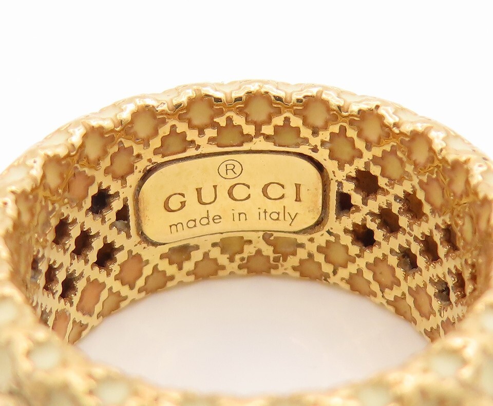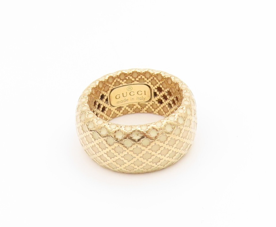 Authenticity Guarantee 18k GOLD Vintage Ring GUCCI Enameled Crisscross Patte...