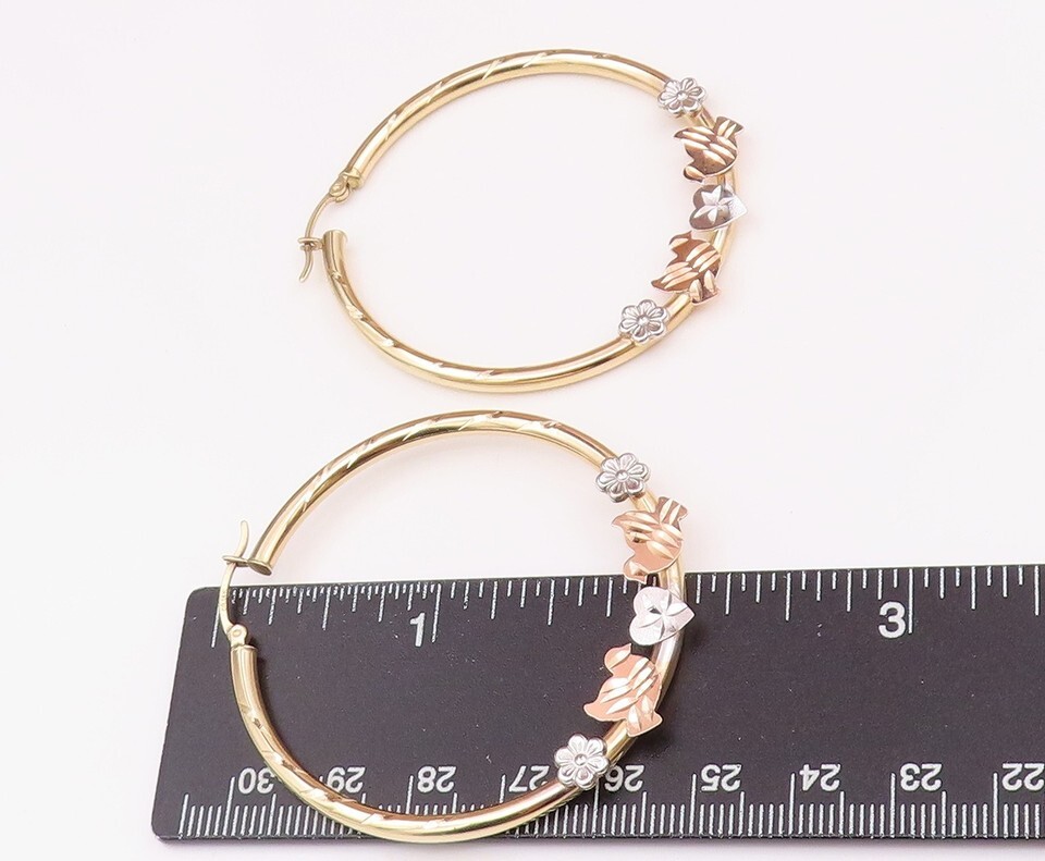 Authenticity Guarantee 14K GOLD Vintage Earrings Birds & Flowers Hearts Carv...