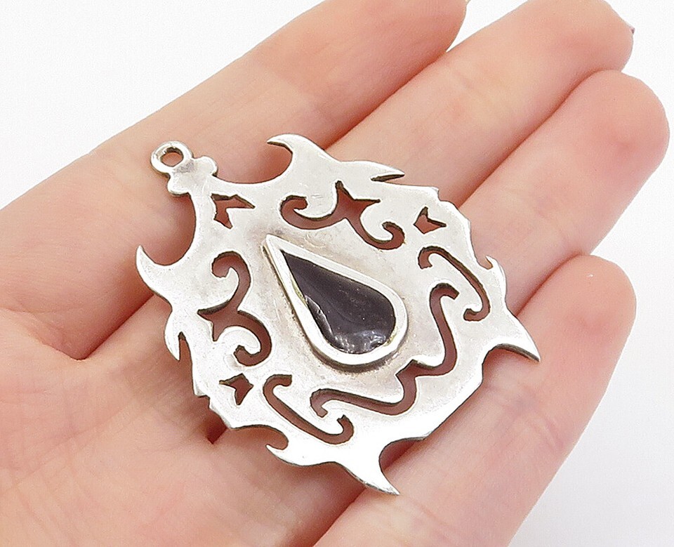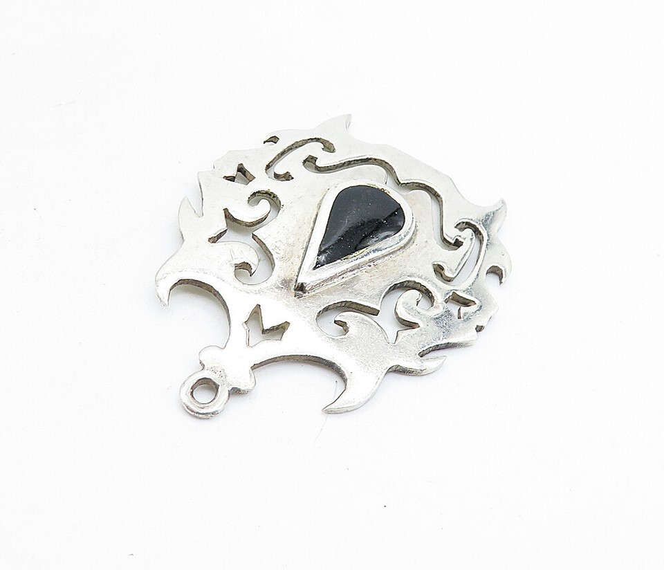 MEXICO 925 Sterling Silver Vintage Black Onyx Swirl Cutout Pendant PT5356