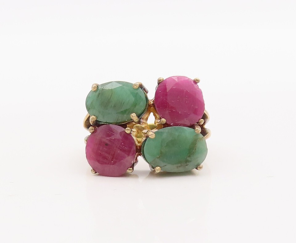 925 Sterling Silver Vintage Ring Gold Plated Ruby & Emerald Sz 7 RG29824