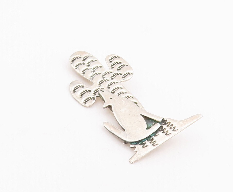 925 Sterling Silver Vintage Brooch Pin Southwestern Wolf & Cactus BP10945