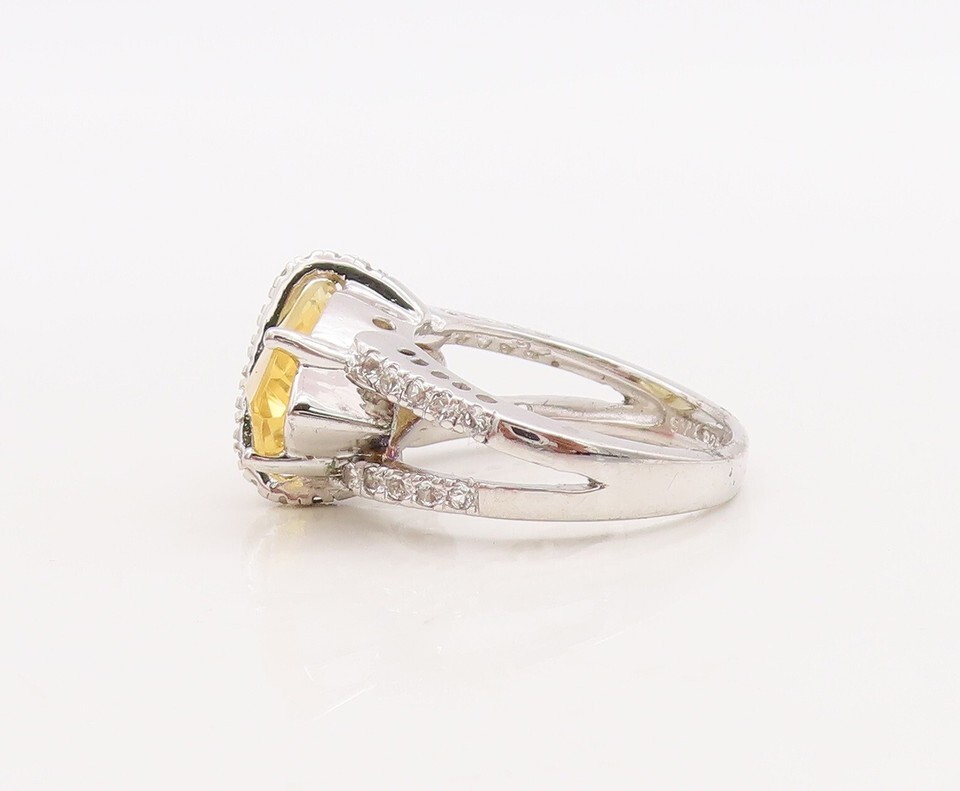 925 Sterling Silver Vintage Ring Marquise Cut Citrine & Topaz Band Sz 7 RG29846