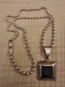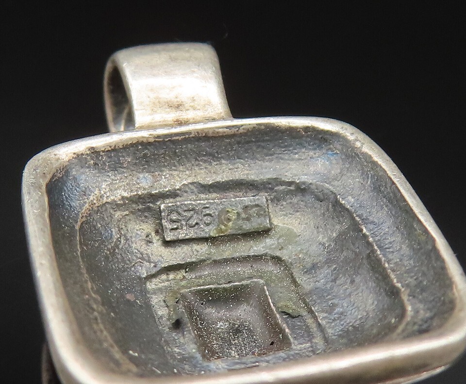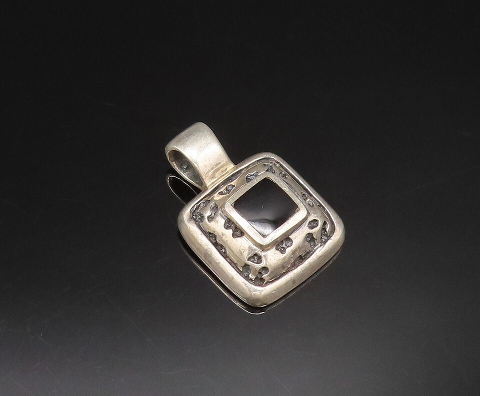 925 Sterling Silver Vintage Inlaid Black Onyx Square Dome Pendant PT21153