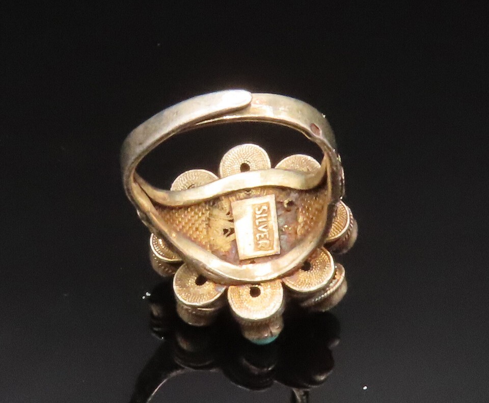925 Sterling Silver Vintage Antique Chinese Export Gemstone Ring Sz 8 RG25254