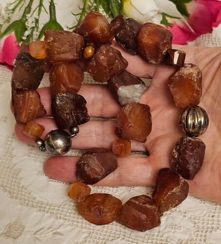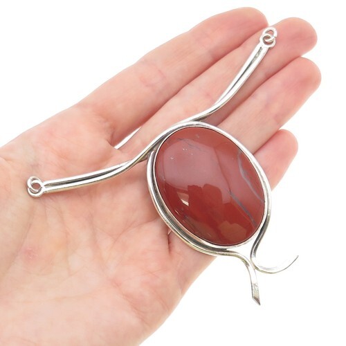 Authenticity Guarantee 925 Silver Vintage Antique Heavy Jasper & Agate Bead...