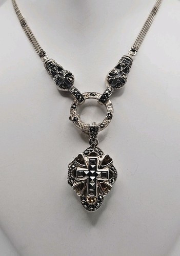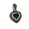 925 Sterling Silver Vintage Black Onyx & Marcasite Love Heart Pendant PT13523