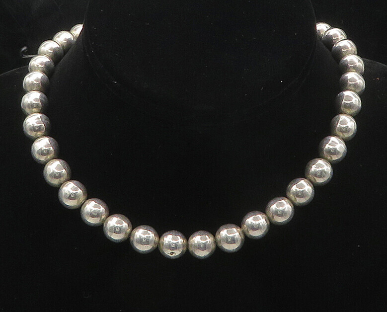 MEXICO 925 Silver Vintage Heavy Minimalist Beaded Chain Necklace NE2922