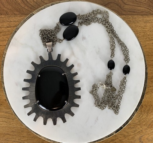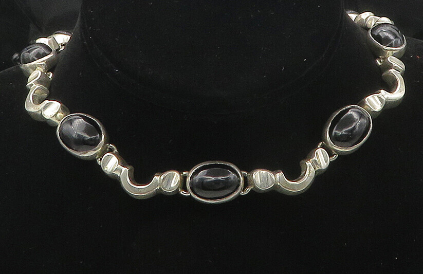 Authenticity Guarantee MEXICO 925 Silver Vintage Heavy Cabochon Black Onyx ...