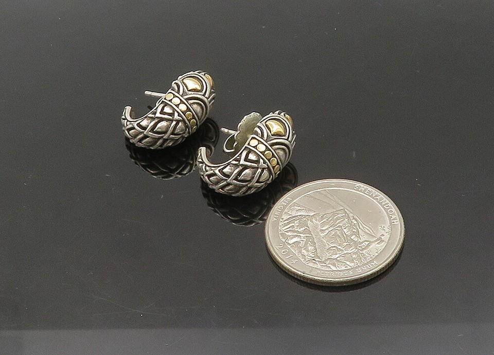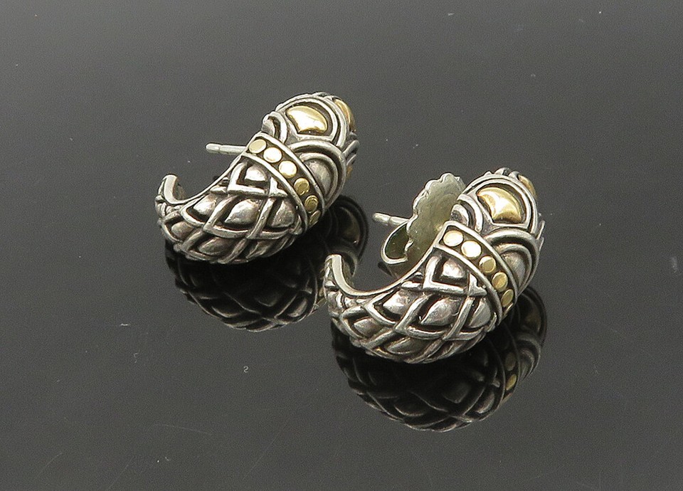 JOHN HARDY 925 Silver & 18K GOLD Vintage 2 Tone Curve Drop Earrings EG10792