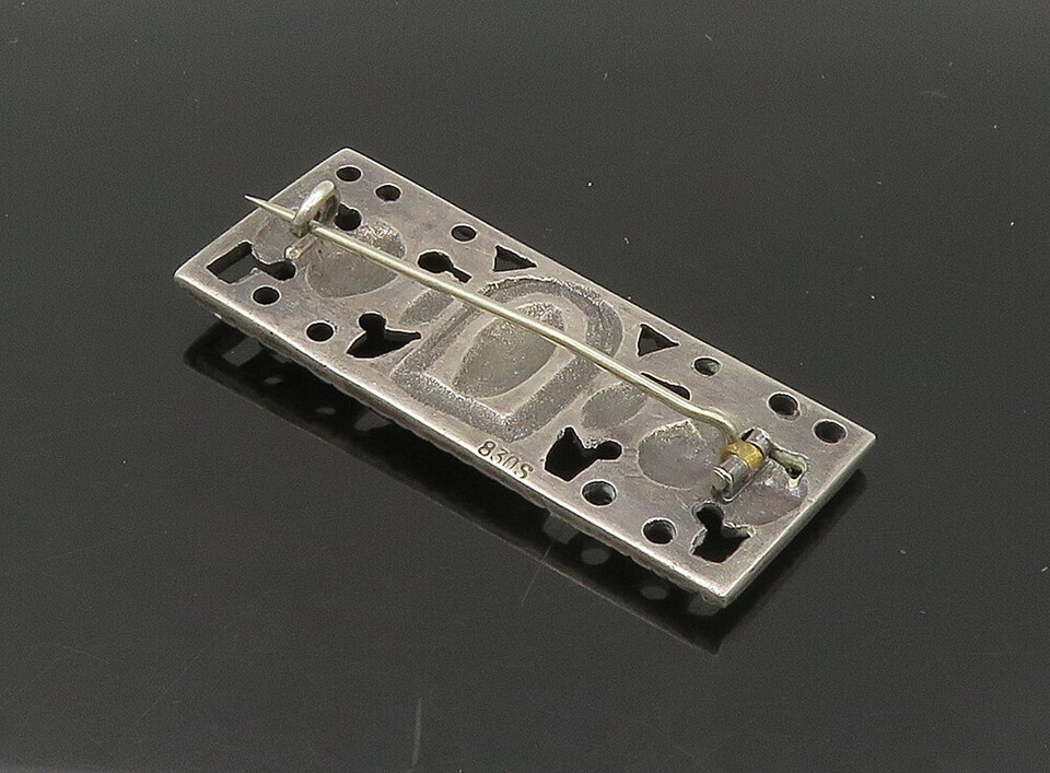 EUROPEAN 925 Silver Vintage Antique Chiseled Faces Square Brooch Pin BP9188