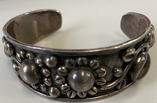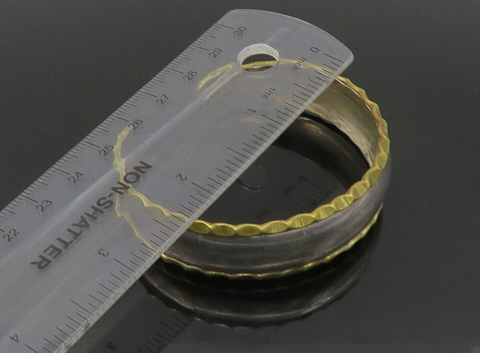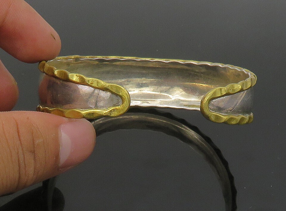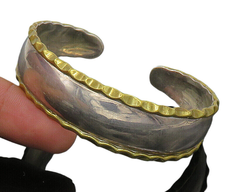 CII MEXICO 925 Silver Vintage 2 Tone Wavy Trim Tapered Cuff Bracelet BT9212