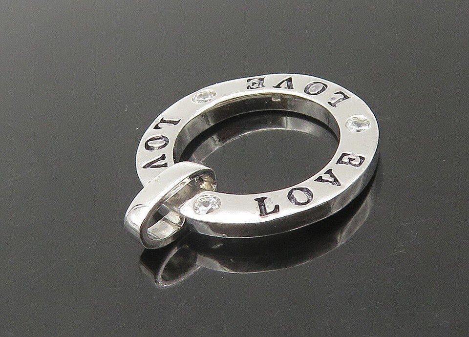 925 Sterling Silver Vintage Cubic Zirconia Love Stamped Pendant PT18264