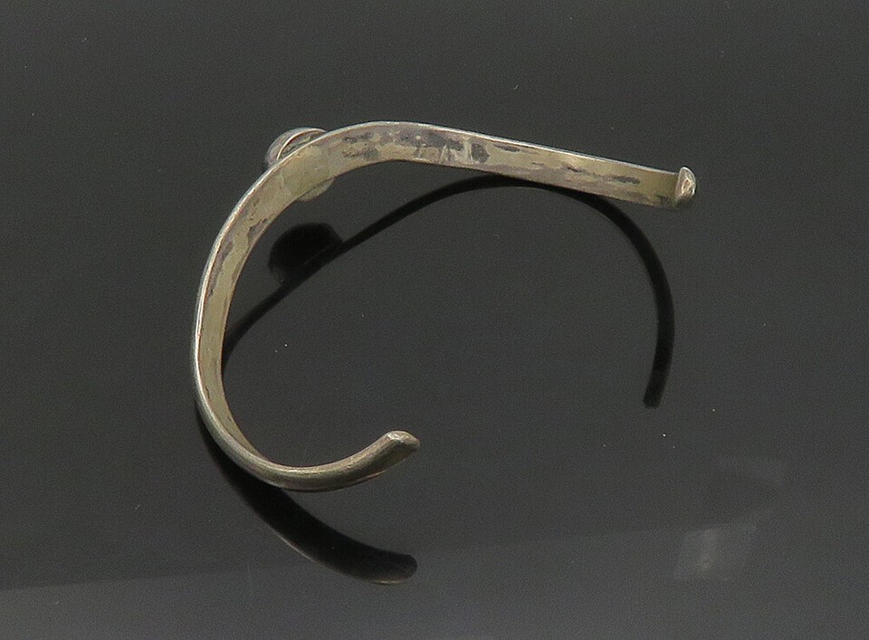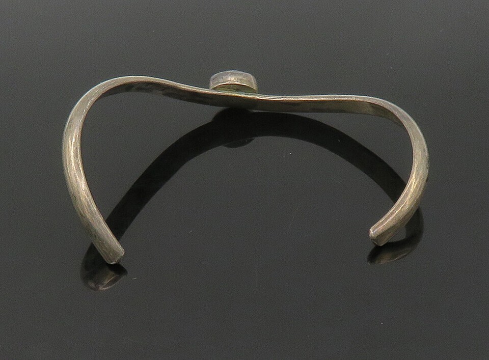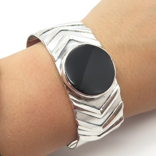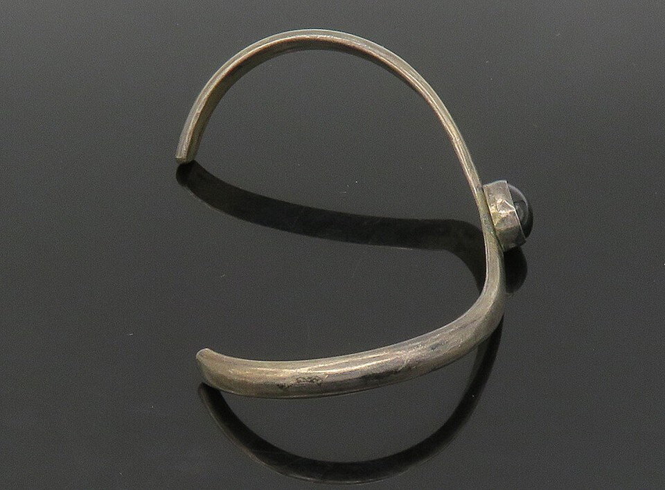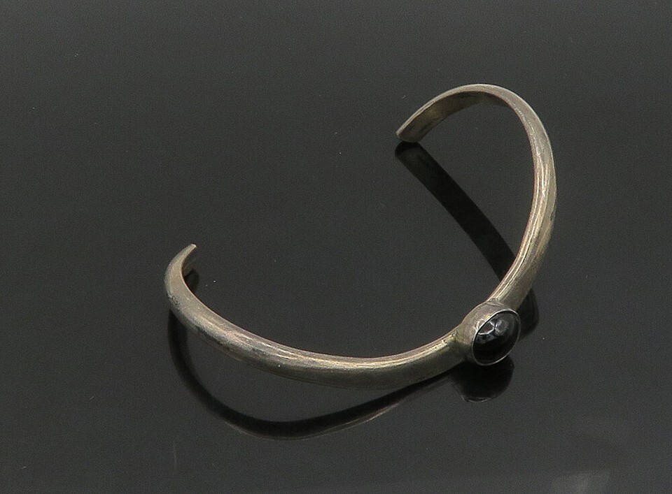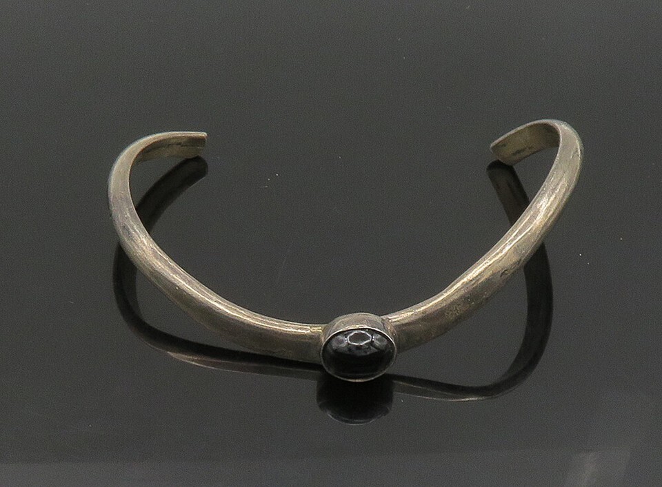 KARI ROYSTON 925 Silver Vintage Black Onyx Curved Shiny Cuff Bracelet BT9233