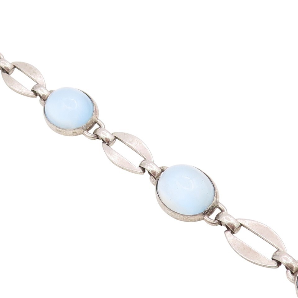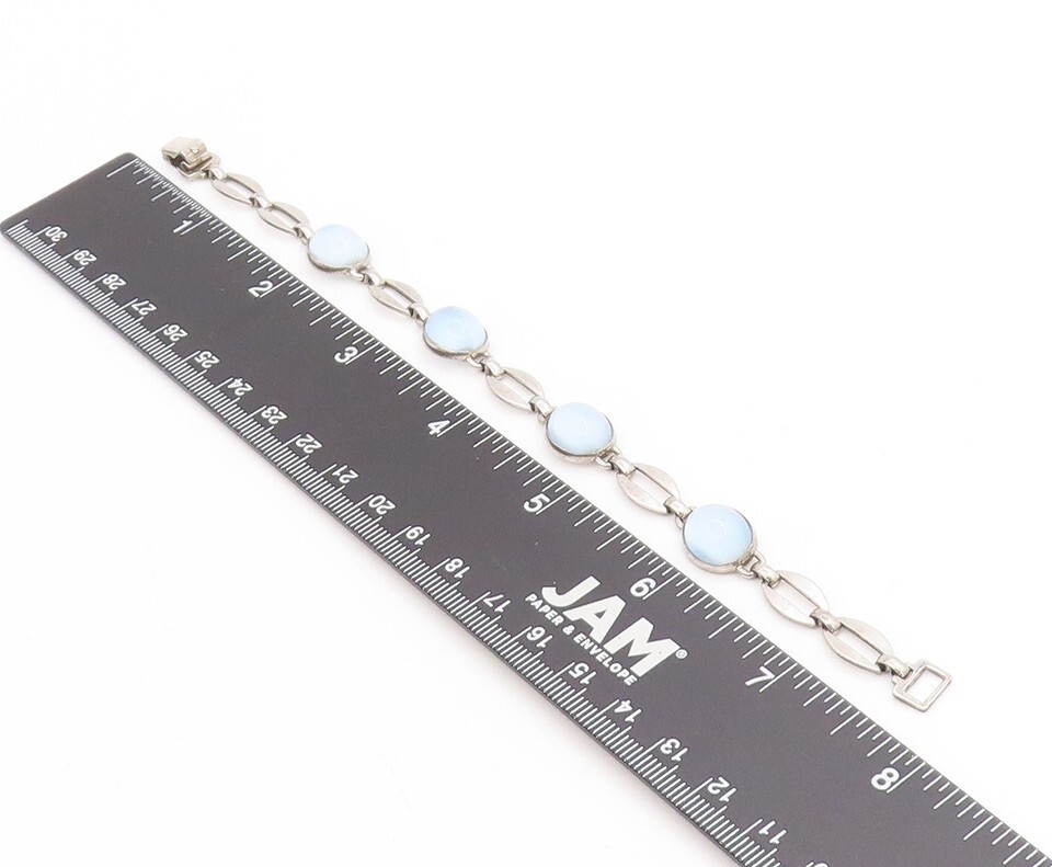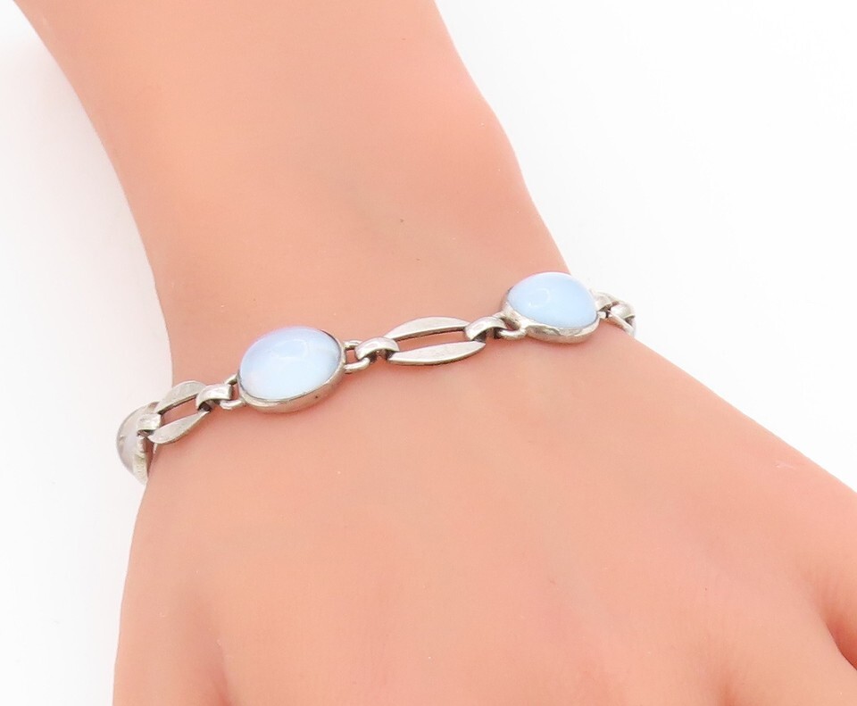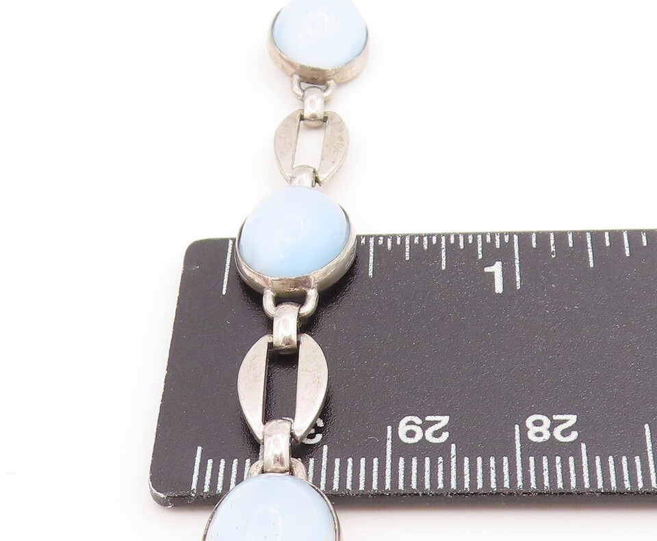 925 Sterling Silver Vintage Bracelet Cabochon Cat Eye Elegant Link BT11753