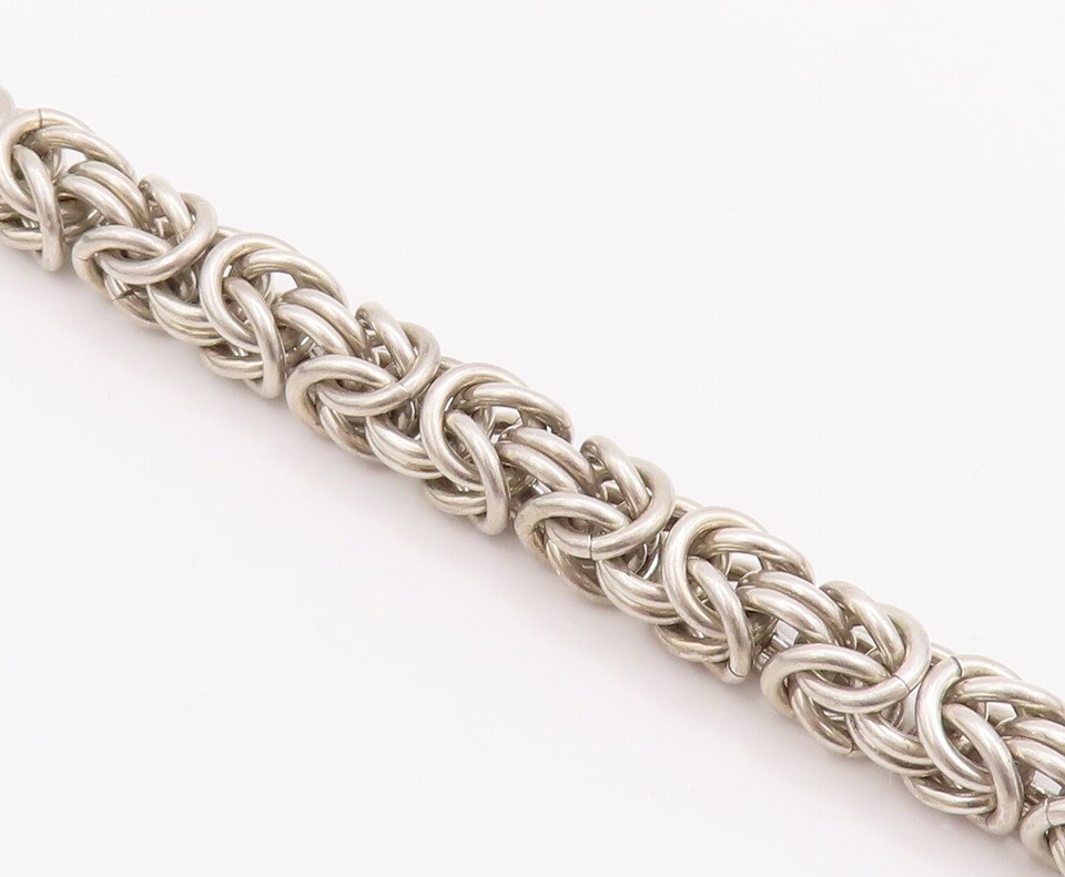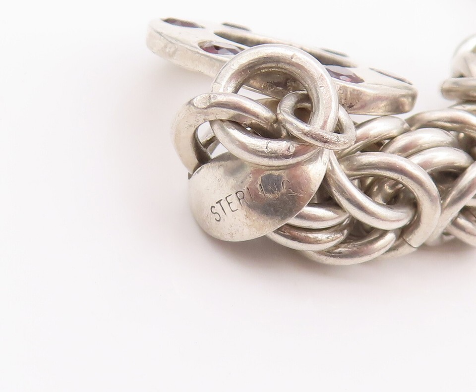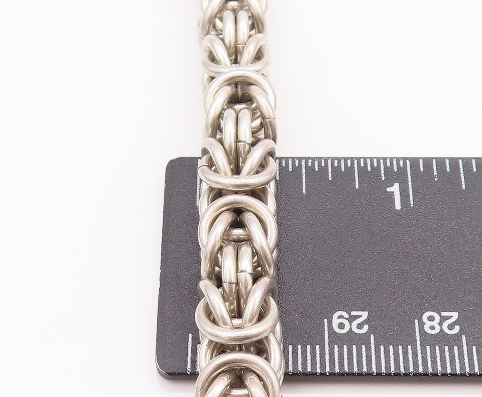 925 Sterling Silver Vintage Bracelet Byzantine Chain Garnet Toggle Lock BT10508